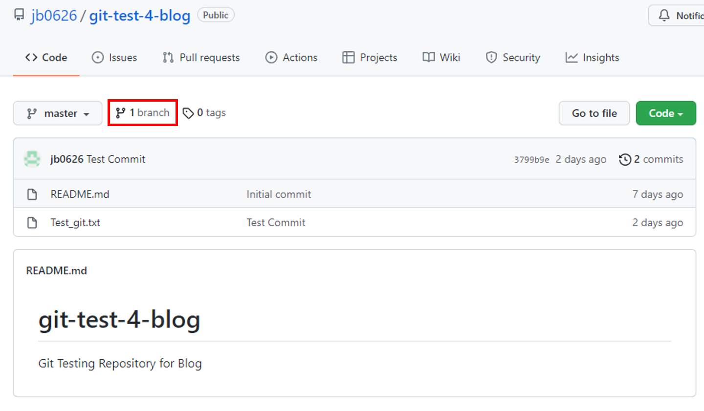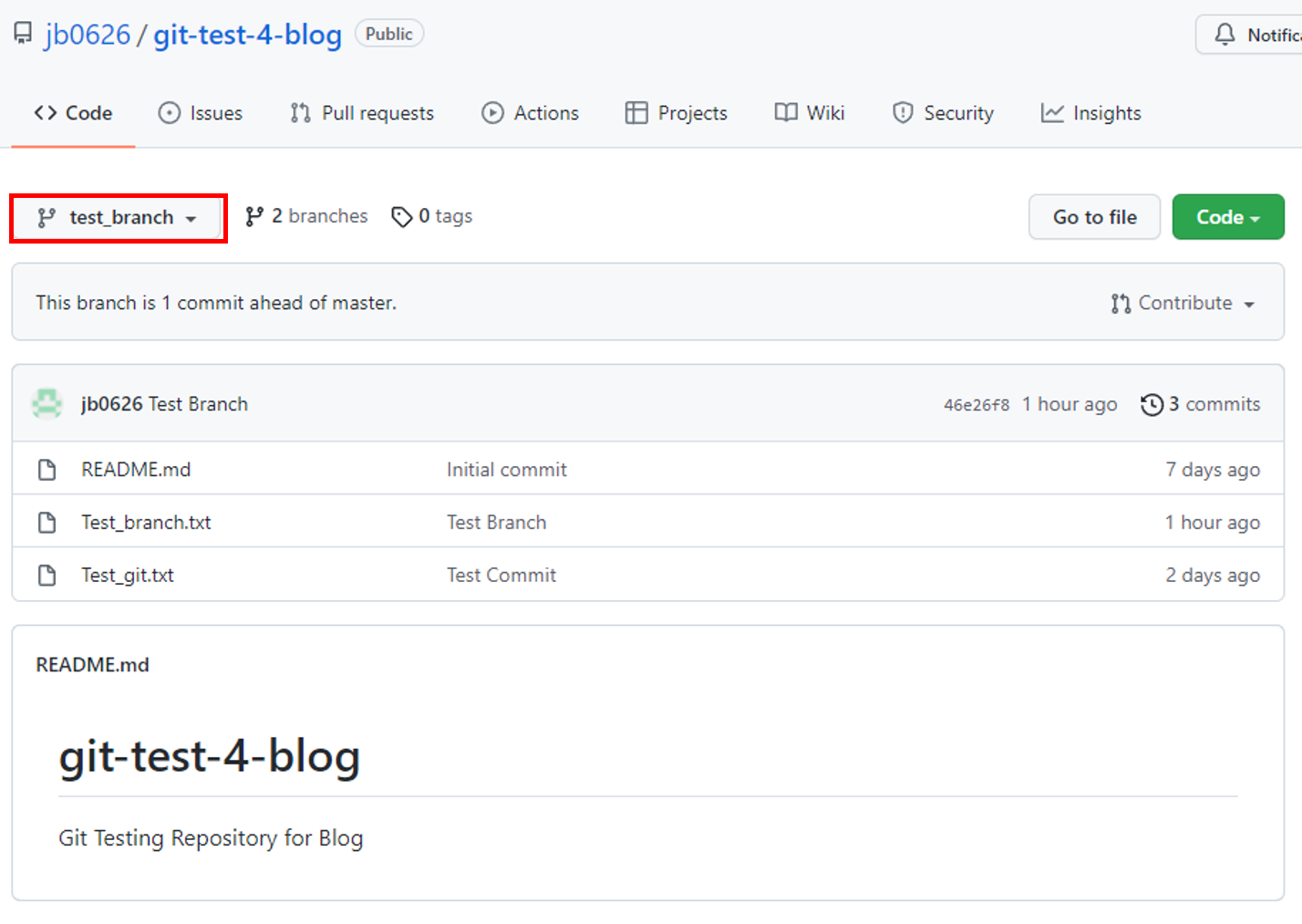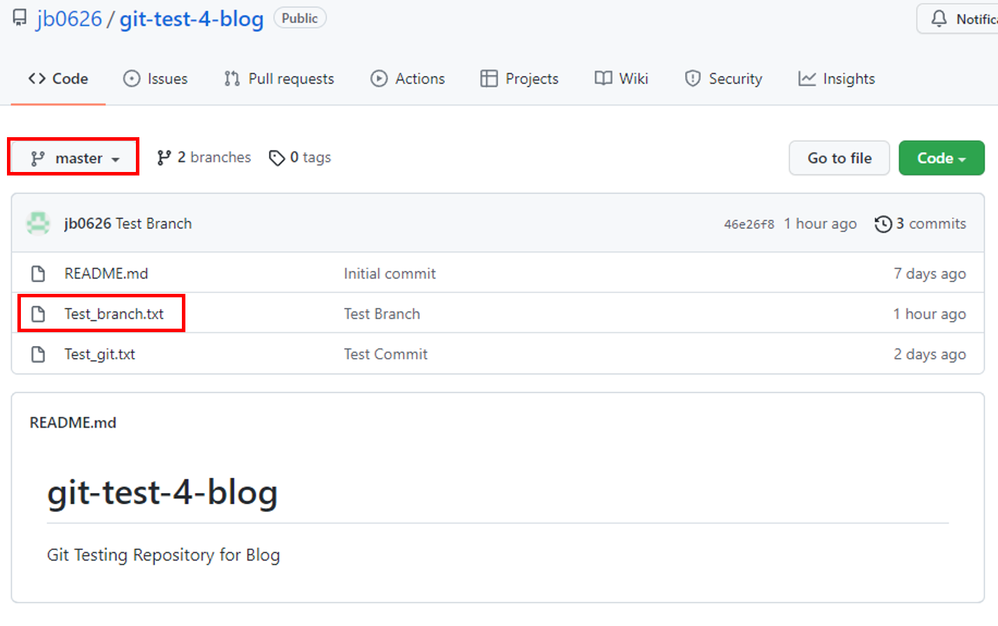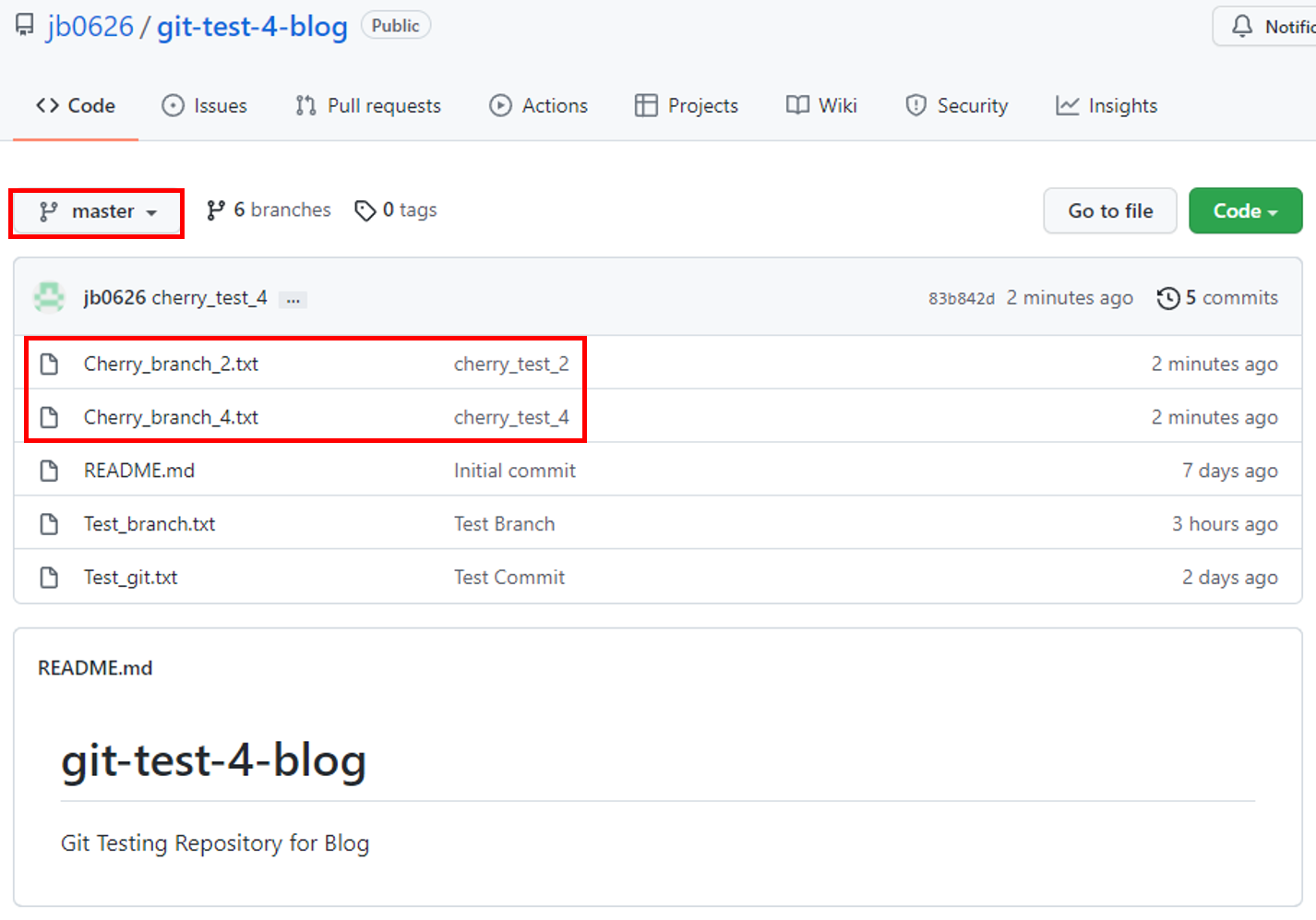 test_branch 브랜치에 있는 파일이 master 브랜치에 적용된 모습이다.