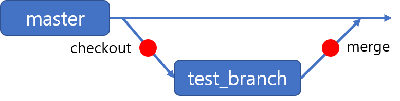 새로 생성한 test_branch 에서 master 브랜치로 체크아웃을 진행한다.