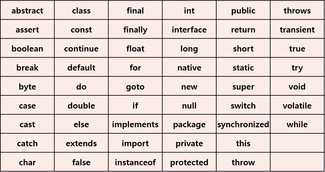 - 자바 예약어는 사용할 수 없다.