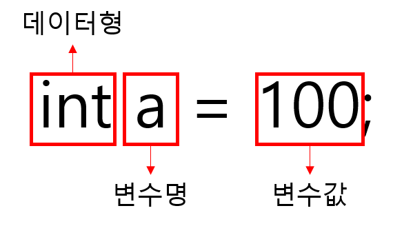 데이터형 변수명 = 변수값;