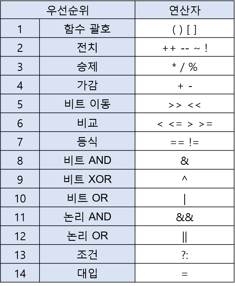 연산자 우선순위