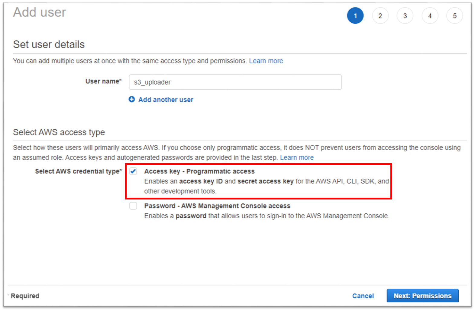 AWS Console 에서 IAM 으로 들어가서 Add User 를 진행한다.